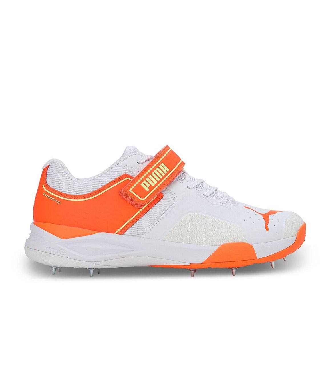 Designed for fast bowlers and all-round cricketers, the PUMA Bowling 22.1 Cricket Spikes (White-Orange) offer exceptional traction, stability, and comfort. Featuring metal spikes, a secure Velcro strap, and a lightweight design, these high-performance cricket shoes ensure you stay at the top of your game, whether you’re bowling at high speeds or moving swiftly on the field.