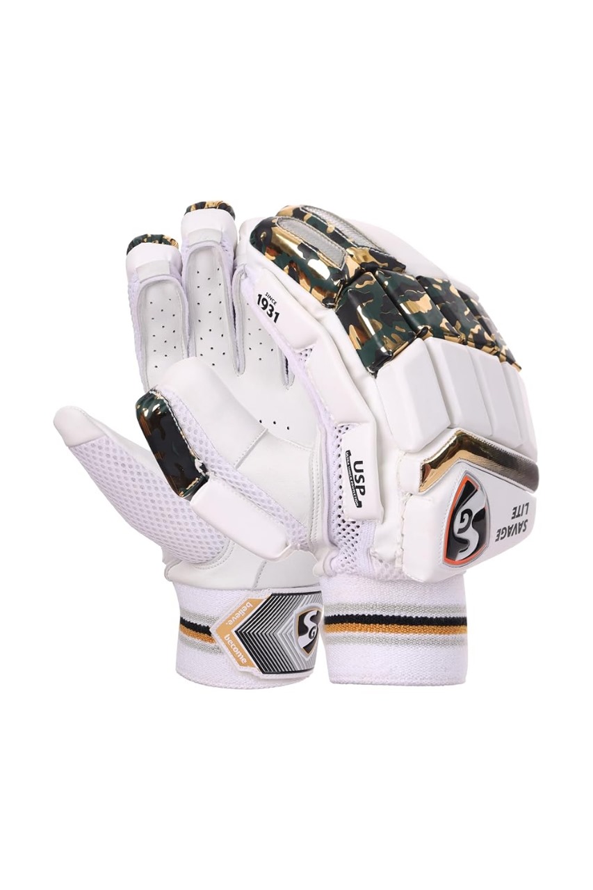 The SG SAVAGE LITE Batting Gloves are designed for cricket players who demand top-tier performance, durability, and comfort. Made with high-quality sheep leather palms, these gloves offer an exceptional grip and long-lasting wear. The rounded captain plastic on the first two fingers of the bottom hand, combined with a thermoplastic polyurethane shell across all fingers, ensures superior protection. An additional leather patch on hard-wearing areas enhances durability, while imported PU and lightweight HD foam finger rolls provide excellent cushioning and flexibility. The split thumb top section with extra fiber protection and three-piece side bar protection on the bottom hand offer added safety. The sponge-padded spacer mesh back ensures a snug and comfortable fit, and the nylon gusset promotes ventilation to keep hands cool.